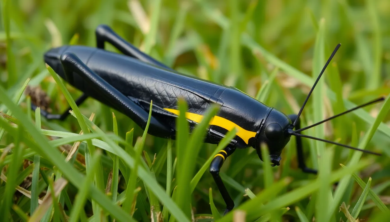 Have you ever spotted a black grasshopper with a striking yellow stripe and thought, “Is that a fashion statement or